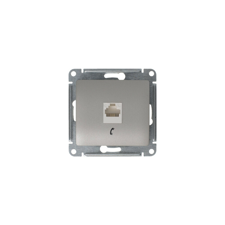 Механизм Systeme Electric (ранее Schneider Electric) серии Glossa (цвет платина) розетки телефонной с разъёмом RJ11 предна значен для удобного и быстрого подключения вашего телефона, модема или факса к телефонной сети. Выполнен из материала PС+ASA, стойкого к УФ-излучению и появлению царапин.