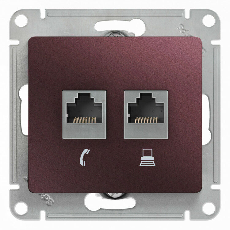 Механизм Systeme Electric (ранее Schneider Electric) серии Glossa (цвет баклажановый) двойной розетки разъёмами RJ45 категория 5е и RJ11 предназначен для удобного и быстрого подключения вашего компьютера и телефона к соответствующим сетям.