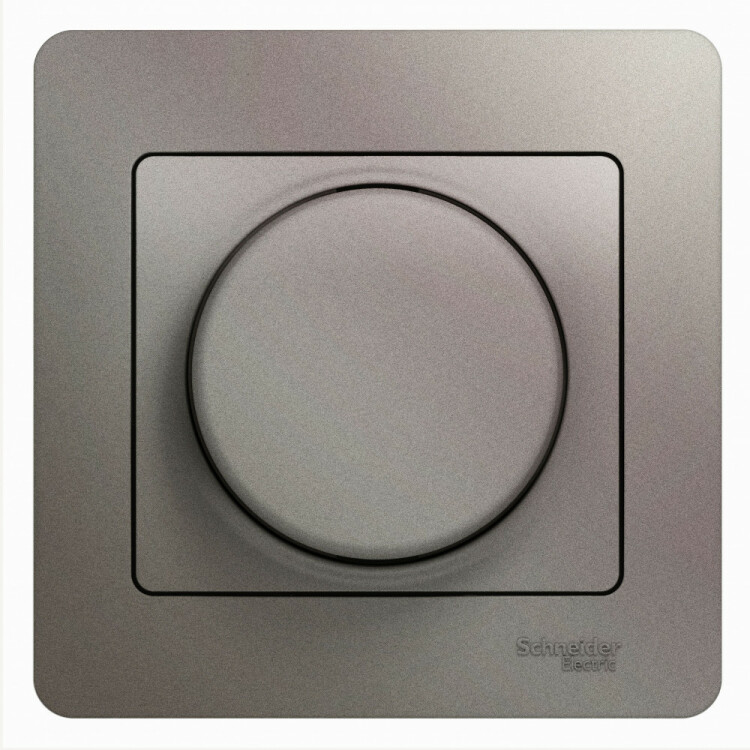 Светорегулятор Schneider Electric Glossa (в сборе, цвет платина) поворотный для нагрузки мощностью до 600 Вт для ламп накаливания и галогенных.