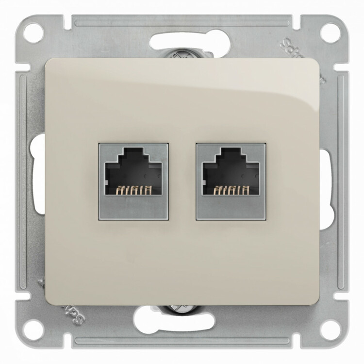 Механизм Systeme Electric (ранее Schneider Electric) серии Glossa (цвет молочный) двойной розетки разъёмами RJ45 категория 5е и RJ11 предназначен для удобного и быстрого подключения вашего компьютера и телефона к соответствующим сетям. Выполнен из материала PС+ASA, стойкого к УФ-излучению и появлению царапин.