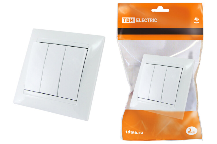Выключатель 3-х кл. 10А белый "Лама" TDM (кр.10шт)