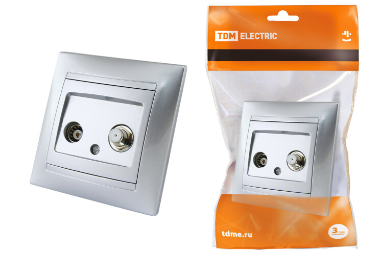 Розетка TV ("мама") + SAT (F-разъем) 0-2400МГц серебр. металлик "Лама" TDM (кр.10шт)