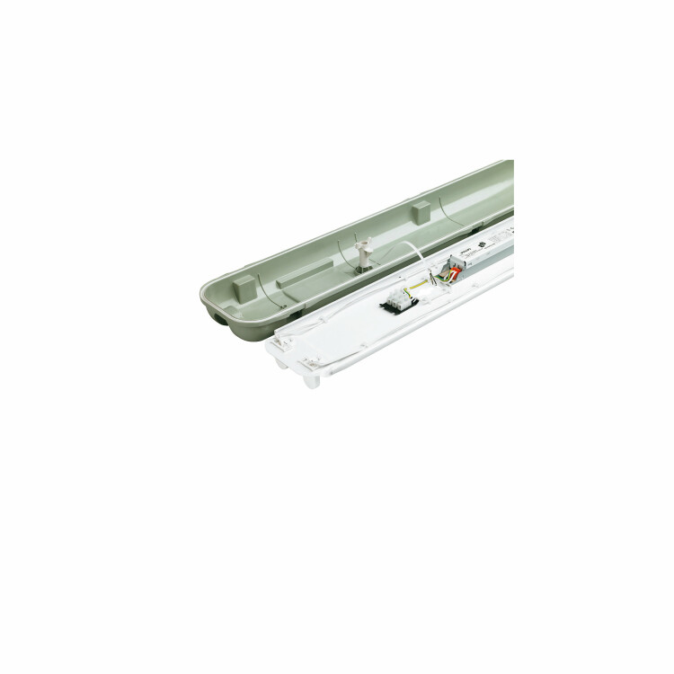 TCW060, разработанный для использования в сложных средах, является экономичным, компактным, водонепроницаемый светильник. Специально разработанные модели работают на основе ламп TL-D и TL5.Влагозащита уровня IP65 и работа исключительно от электронного устройства делает этот светильник конкурентным, энергосберегающим решением для сырых помещений; при этом его стоимость аналогична стоимости электромагнитных решений. Гибкое потолочное крепление обеспечивает простоту установки и обслуживания.