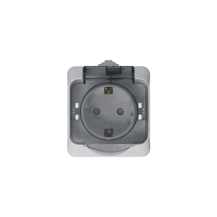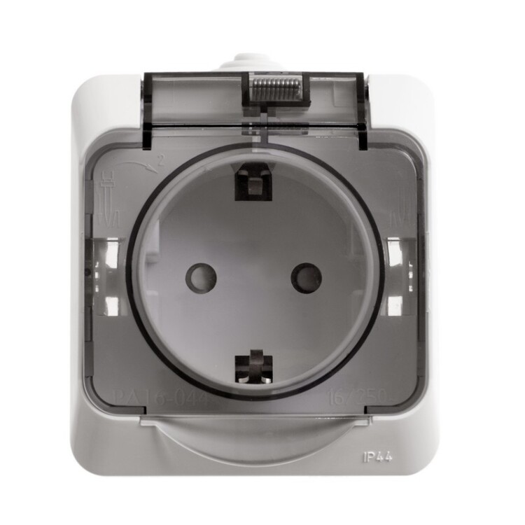 Розетка Systeme Electric (ранее Schneider Electric) ЭТЮД (белый, открытой установки) одноместная с заземлением и шторками предназначена для применения в сетях до 250В, на ток до 16А. Шторки обеспечивают дополнительную безопасность. Розетка удобна в применении и отлично подходит для ванной комнаты (IP44). Сделано в России. (ранее Schneider Electric ЭУИ RONDO44 RA16-112B-BI)