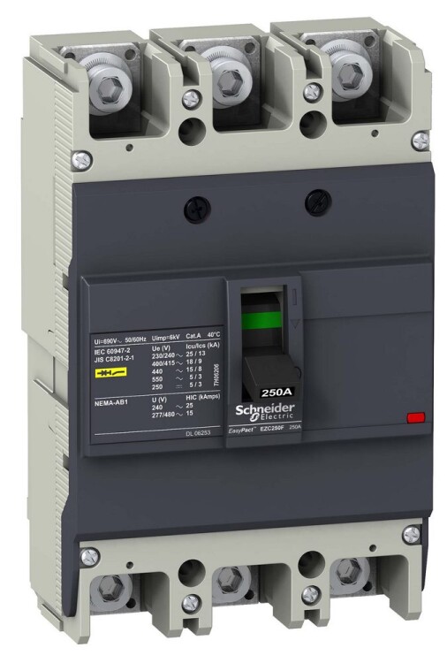 Автоматический выключатель EasyPact EZC250F Schneider Electric; 3P3t; номинальный ток 125 А; Icu = 18 kA при 400/415 В; Ics=50% Icu; расцепитель and ndash; термомагнитный, нерегулируемый; ШхГхВ and ndash; 140х68x165 мм; исполнение and ndash; стационарный; монтаж - на панели.