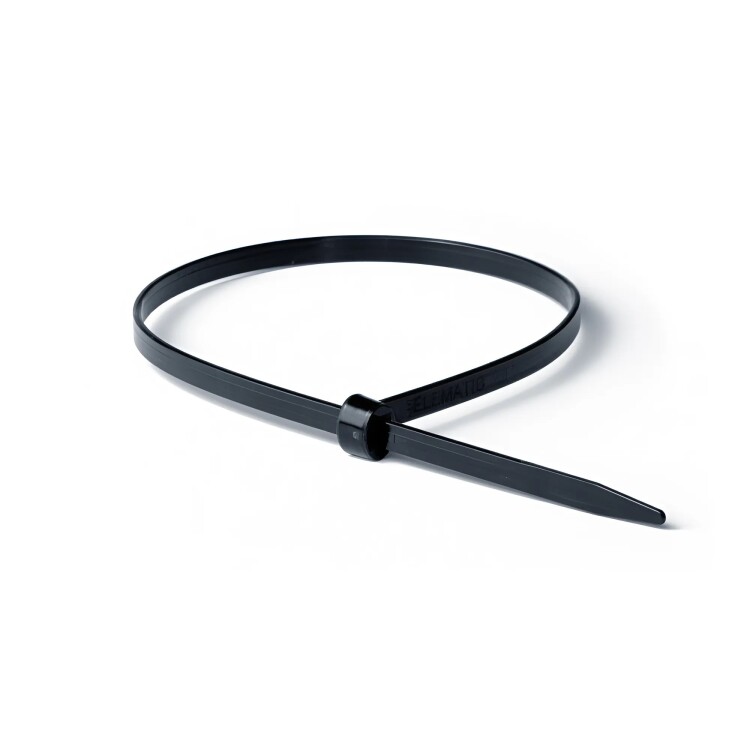 Хомуты с замком из нержавеющей стали предназначены для трассировки кабельно-проводниковых трасс во время выполнения электротехнических работ. Двойной замок из нержавеющей стали помещается в формы для хомутов и заливается полиамидом 6.6 – это обеспечивает надежную фиксацию замка внутри хомута и увеличенный срок эксплуатации данных изделий. В составе хомутов не содержатся галогены. Размеры: ширина - 2.5 мм, длина - 100 мм. Цвет - черный.