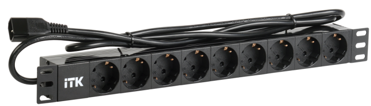Горизонтальные 19" PDU от ITK прек расно справляются с задачей по электроснабжению сетевого оборудования в шкафах и стойках, а также с требованием защиты от токов короткого замыкания и перенапряжения. Изготавливаются блоки розеток из высококачественных термостойких материалов и пластмасс и соответствуют российским и международным стандартам качества. Горизонтальные PDU соответствуют стандарту 19" (482,6 мм) и устанавливаются с помощью кронштейнов на 19" профиль, при этом положение кронштейнов можно менять.