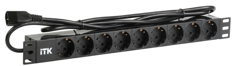 Горизонтальные 19" PDU от ITK прекрасно справляются с задачей по электроснабжению сетевого оборудования в шкафах и стойках, а также с требованием защиты от токов короткого замыкания и перенапряжения. Изготавливаются блоки розеток из высококачественных термостойких материалов и пластмасс и соответствуют российским и международным стандартам качества. Горизонтальные PDU соответствуют стандарту 19" (482,6 мм) и устанавливаются с помощью кронштейнов на 19" профиль, при этом положение кронштейнов можно менять.