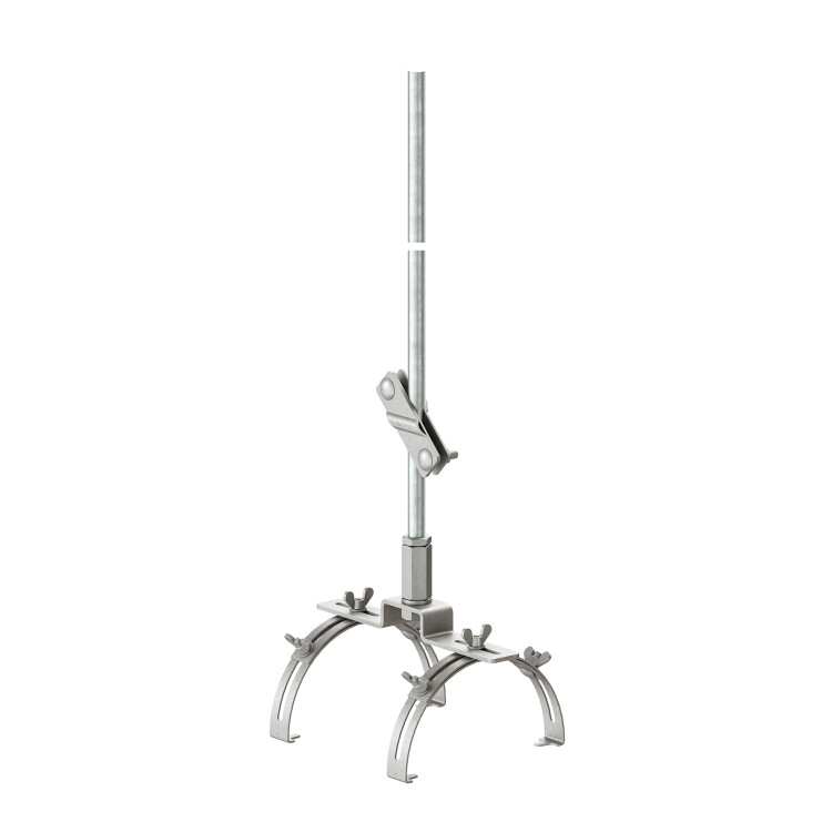Коньковый молниеприемник с двойным зажимом устанавливается на круглый конек кровли. В комплект молниеприемника входит установочный соединитель для подключения токоотвода - круглого 8-10 мм или плоского 25-50 мм проводника. Длина - 1500 мм, диапазон зажима - 125-205 мм.