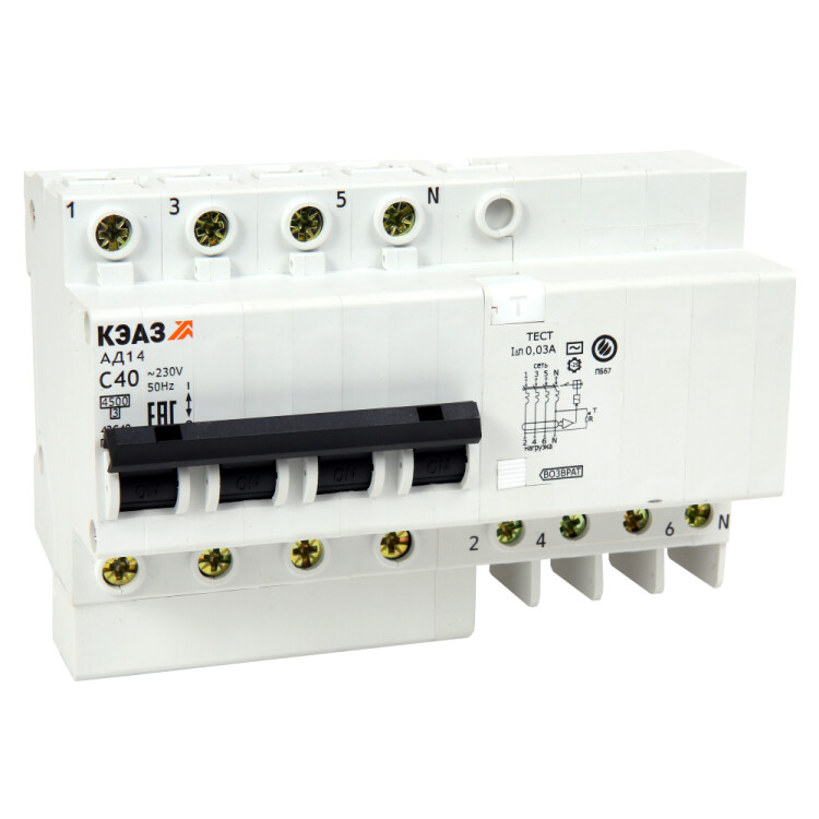 АВДТ с защитой от сверхтоков АД14-42C25-АC-УХЛ4-КЭАЗ (4P, C25, 30mA) (кр.1шт)