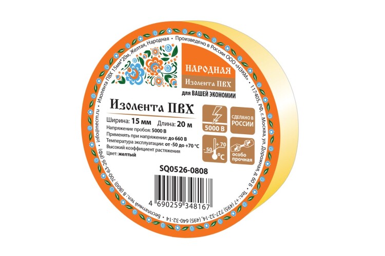 Применение:При промышленных, строительных и бытовых работах для электрической изоляции проводов и кабелей.При ремонте и сращивании электрокабелей с неметаллическими оболочками.Для маркировки проводов и кабелей Материалы:ПВХ (поливинилхлорид) пленка с клеевым слоем на основе каучукаПреимущества:Широкий выбор цветов изоленты поможет, при необходимости, сделать контакт проводов менее заметным или, наоборот, подобрать удобную цветовую сему для маркировки проводов.Современный материал, отличающийся небольшим весом и высоким коэффициентом растяжения.Напряжение пробоя до 5000 В Назначение:Защищает соединение от воздействия влаги, солей, слабых растворителей, ультрафиолетовых лучейУвеличивает механическую прочность соединения 0: