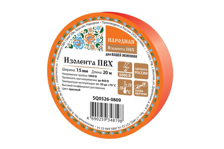 Изолента ПВХ 15мм*20м, Красная, Народная (кр.10шт) нМ