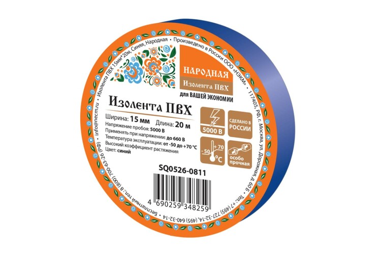Изолента ПВХ 15мм*20м, Синяя, Народная (кр.10шт) нМ