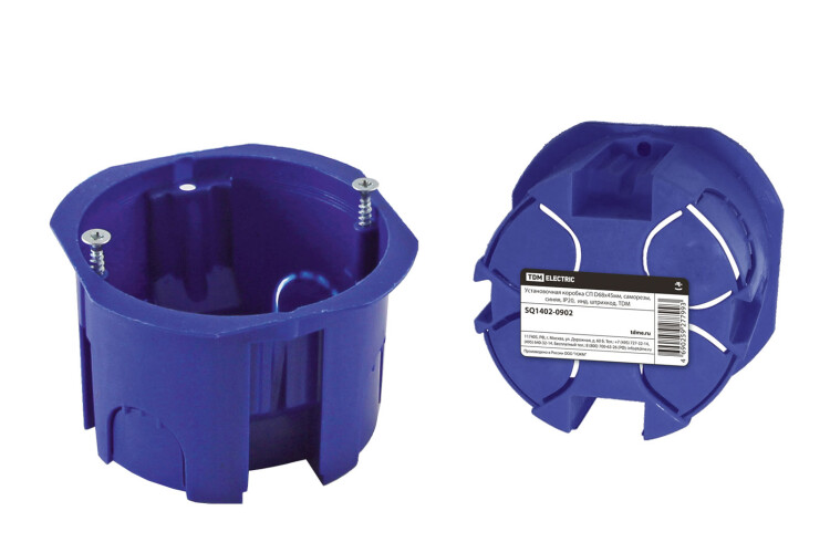 Установочная коробка СП D68х45мм, саморезы, синяя, IP20, инд. штрихкод, TDM (кр.200шт)