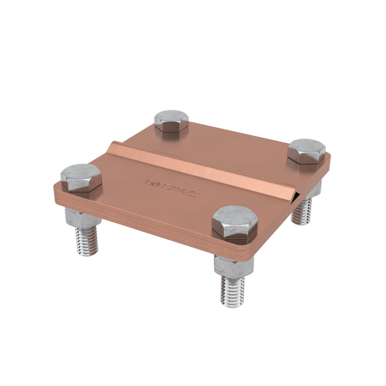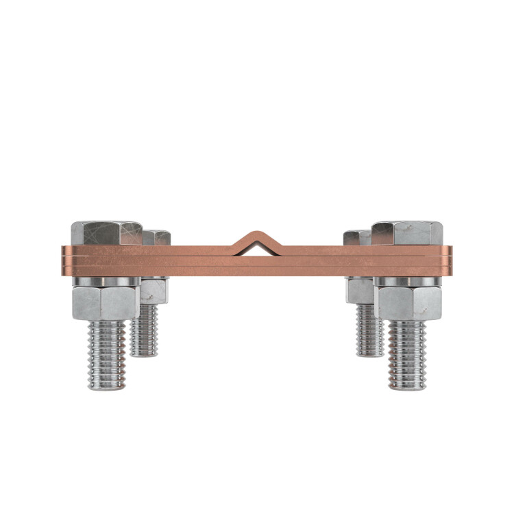 Соединитель "пруток - полоса" с разделительной пластиной используется для параллельного либо крестового соединения прутка 8-10 мм с полосой 20-50 мм. Материал - медь.