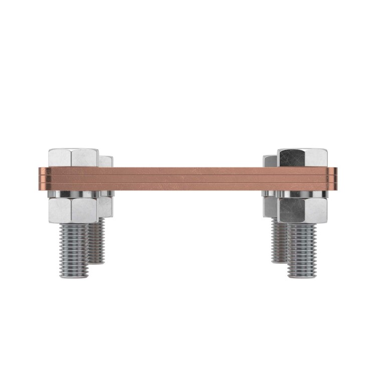 Соединитель "полоса-полоса" применяется для параллельного либо крестообразного соединения плоских проводников шириной 20-40 мм. Материал - медь.