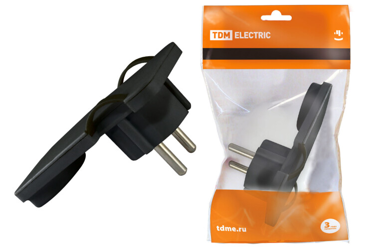 Вилка угловая плоская (8 мм) черная 16А 250В TDM (кр.18шт)