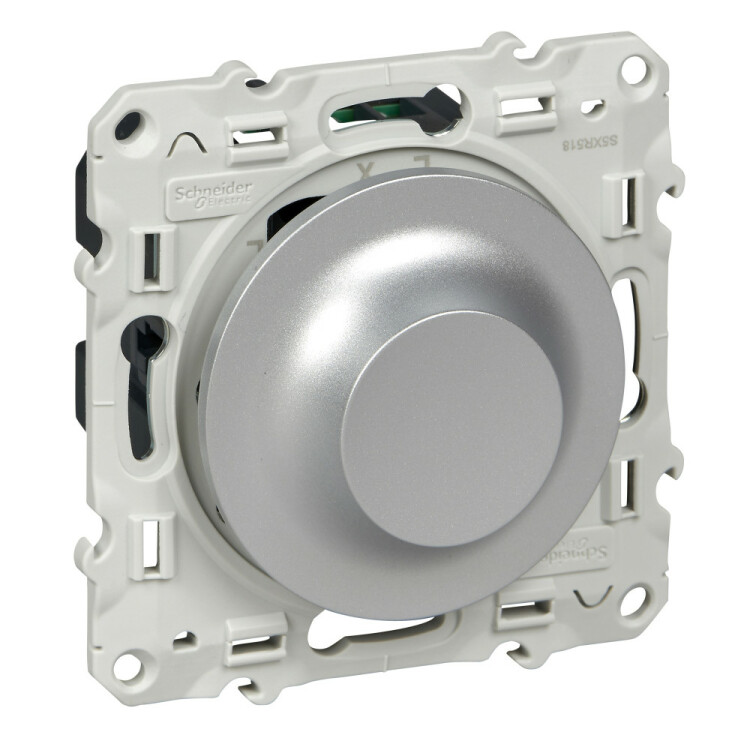 Светорегулятор Schneider Electric ODACE (цвет алюминий) поворотно-нажимной с винтовыми зажимами на мощность 9-100 Вт.