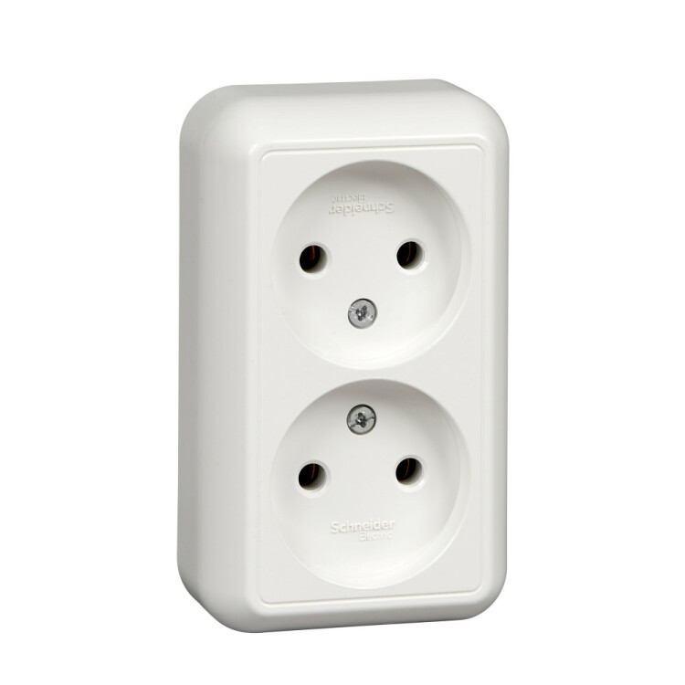 ПРИМА О/У РОЗЕТКА 2-я без заземления без шторок 16А 250В, БЕЛЫЙ, розн.уп.Россия (кр.112шт) C3(+)