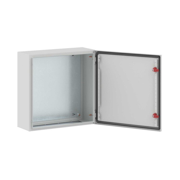 Навесные корпуса ST предназначены для систем автоматизации и распределения электроэнергии. Корпус, дверь, фланец изготавливаются из стали толщиной 1,2 мм с атмосферостойким порошковым покрытием, цвет RAL7035. Монтажная плата - из оцинкованной стали толщиной 1,8 мм. Степень защиты IP66, ударопрочность IK10, сейсмостойкость 9 баллов по шкале MSK-64, климатическое исполнение УХЛ1, ОМ2, ОМ3, группа горючести Г1. Комплект поставки: корпус, дверь реверсивная, монтажная плата с двунаправленной разметкой, дверные рейки, поворотный замок 2 шт., сплошной фланец для ввода кабеля 1 шт., комплект заземления без проводов, монтажные аксессуары. Габариты 500x500x200 (ВхШхГ) мм.