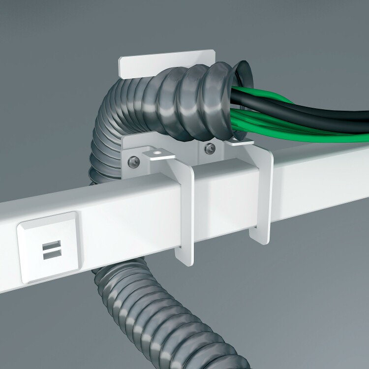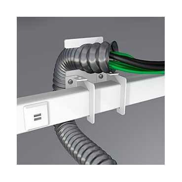 Крепление гофротрубы к шинопроводу. система монтажа кабелей: блок розеток, полюс - тип устройства или его аксессуаров: потолочное крепление. Преимущества: .. применения: .. Преимущества: Система прямого монтажа розеток (без суппорта). Электромонтажная система для организации рабочих мест и подвода к ним силовых, телефонных и информационных сетей. Электромонтажная система для организации рабочих мест и подвода к ним силовых, телефонных и информационных сетей., Широкий выбор: система предлагает широкий выбор типоразмеров кабель-каналов, лючков, мини-колонн, сервисных стоек, а также электроустановочных изделий Аltira стандарта 45мм., Удобный и быстрый монтаж: прямое защёлкивание (без суппорта) розеток Altira в элементы системы OptiLine 45, установка аксессуаров защёлкиванием делают монтаж удобным и быстрым. Не требуется подгонка аксессуаров перед установкой., Готовые решения: OptiLine 45- это набор решений для различноых видов кабельной проводки с возможностью модернизации и адаптации в будущем, Современный дизайн: все элементы системы идеально сочетаются с изделиями Altira и имеют современный внешний вид., Безопасность и надёжность: прочная, надёжная конструкция, исключение прямого доступа к токоведущим элементам, полное соответствие российским и международным нормам и стандартам по пожаро- и электробезопасности., Экологичность: материалы, используемые при производстве системы OptiLine 45, соответствуют всем требованиям стандартов по экологичности, не содержат свинца и кадмия.... применения: - OptiLine 45 – электромонтажная система для организации рабочих мест в коммерческих зданиях., Это готовые решения, как для офисов традиционной планировки, так и для офисов открытого типа., Офисы, конференц-залы, автосалоны, диспетчерские, магазины – для каждого из этих объектов Вы найдёте несколько вариантов решений и выберете оптимальный.... Преимущества: .. применения: ..