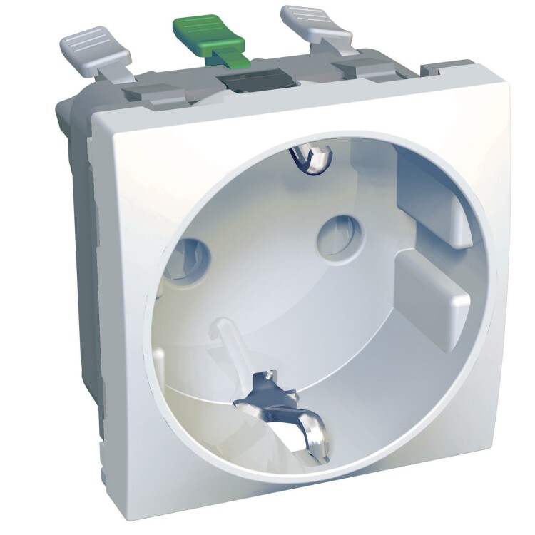 Розетка двойная Altira Schneider Electric (цвет красный) с заземлением и шторками подходит для сетей 250 В, на ток 16 А.