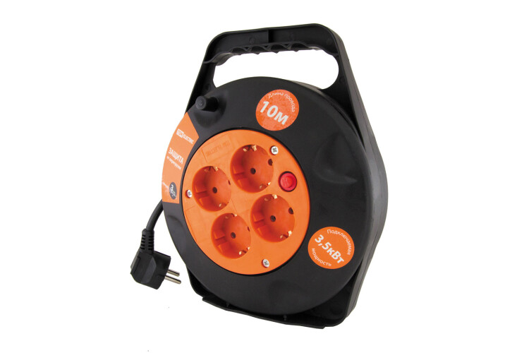 Применение:На стройке;На садовом участке;В промышленностиВ быту Материалы:Катушка из ударопрочного пластика или металла толщиной 0,8-0,9 мм;Стальная стойка, окрашенная с помощью порошковой технологии.Преимущества:Конструкция крепления барабана обеспечивает легкость намотки провода любого сечения;Высокая износостойкость и долговечность благодаря ударопрочному пластику;Удлинители с обрезиненным штепсельным гнездом позволяют подключать электроприборы, которые требует мобильного перемещения (электрогазонокосилки и т.д.)Мягкая изолирующая ручка облегчит транспортировку изделия и защитит от поражения электрическим током при повреждении изоляции. Назначение:Для подключения удаленных на расстояние до 50 м от стационарной розетки электроприборов. 0: