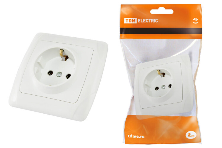 Розетка 2П+З 16А 250В белая "Онега" TDM (кр.10шт)
