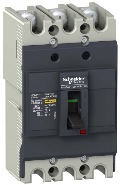 3П3Т АВТ. ВЫКЛ. EZC100 7,5KA/400В 50 AПреимущества: Автоматические выключатели EasyPact EZC имеют три типоразмера и представляют собой простое и универсальное решение для защиты сетей низкого напряжения. Применения: Применение в системах электроснабжения объектов с токами короткого замыкания, не превышающипромышленные установки, жилые здания, административно, коммерческие объекты.