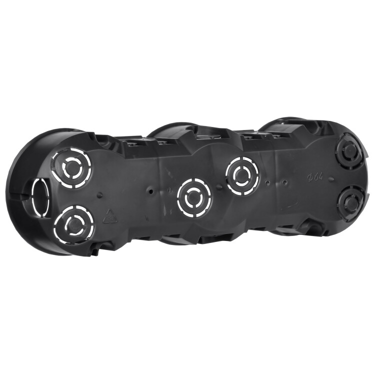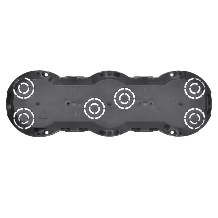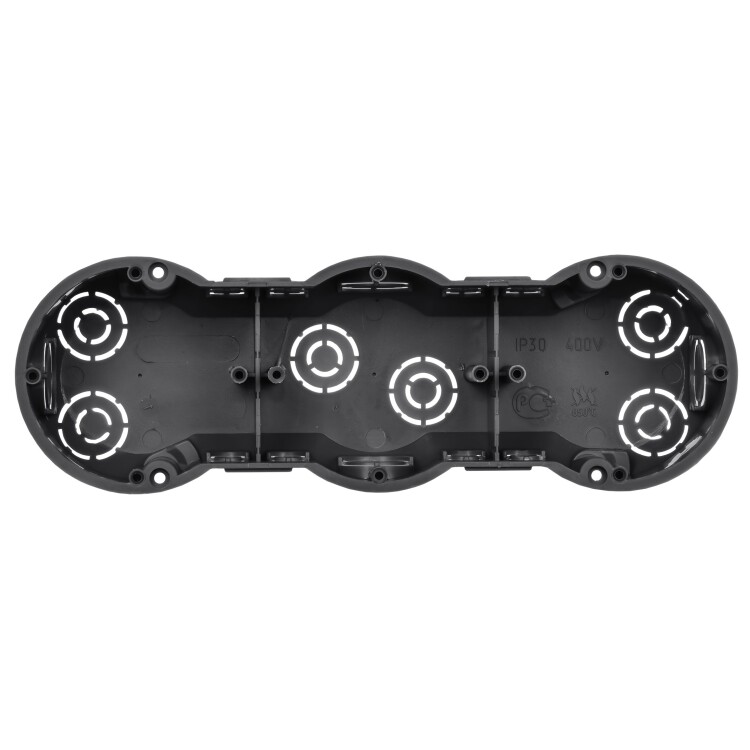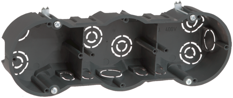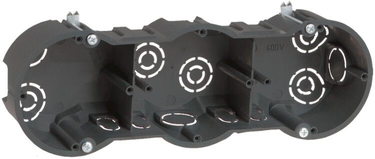 Установочные и распределительные коробки данной серии предназначены для монтажа в сплошные кирпичные или бетонные стены различных электроустановочных изделий: розеток, выключателей, диммеров. Используя крышку, изделия можно применять в качестве распаячной (разветвительной) коробки для развода кабеля и проводов. Материал изготовления: полистирол. Материал коробок является безгалогенным («HF» — halogen-free). Степень защиты: IP20. Температура эксплуатации: -15...+60. Цвет: черный. Количество вводов: 10. Количество мест: 3. Размер: 212х70х45мм.