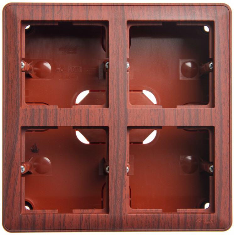 Коробка Schneider Electric W59 (цвет морёный дуб) четырёхместная подъемная с рамками для открытого монтажа.