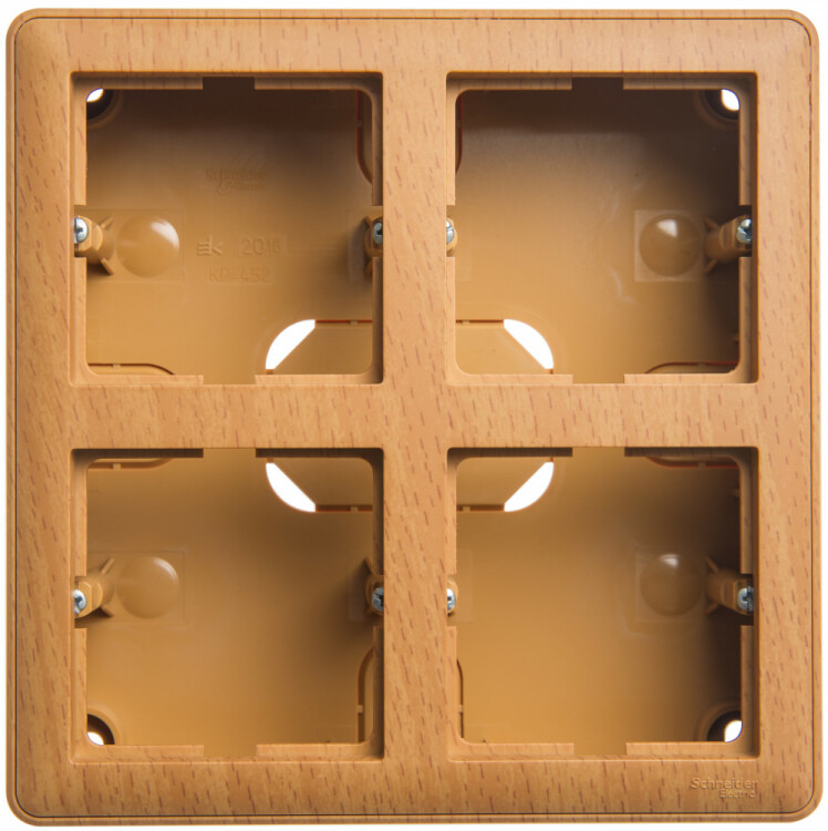 Коробка Schneider Electric W59 (цвет бук) четырёхместная подъемная с рамками для открытого монтажа.