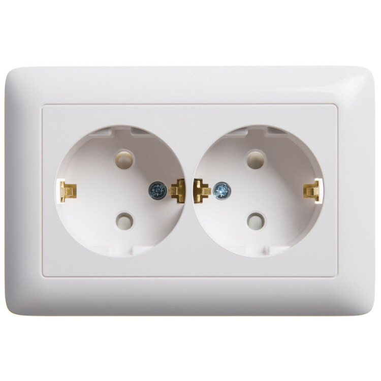 Розетка Systeme Electric (ранее Schneider Electric) ХИТ (скрытой установки, цвет белый) двойная с заземлением, шторками, предназначена для сетей до 250 В на ток до 16 А. Розетка изготовлена из ABS-пластика, проста в установке, прочна и надежна в применении. Двойная розетка позволяет подключить два устройства в одном месте. Шторки обеспечивают дополнительную безопасность в доме, где находятся дети. Зазе мляющий контакт обеспечивает дополнительную защиту от удара электрическим током. При наличии заземления электрический потенциал уходит в землю, защищая человека. Сделано в России.