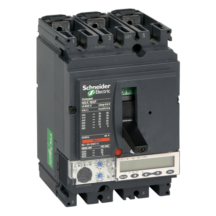 Автоматический выключатель Compact NSX160H, исполнение – 3P3d - номинальный ток 100 А - Icu = 70 kA 380/415 В - Ics = 100% Icu - с электронным расцепителем Micrologic 5.2 A (защита LSI, амперметр) - ШхВхГ – 105x161x86 мм - исполнение – стационарный - монтаж - на плате. Преимущества: Прямой доступ к экономии затрат, безопасность и защита, контроль и измерение параметров электроэнергии, надежность энергоснабжения, простота и удобство. Применения: Применение в системах электроснабжения объектов любого масштаба – от крупнейших промышленных предприятий до офисных зданий для защиты распределительных сетей, генераторов, кабелей большой протяженности, электродвигателей.