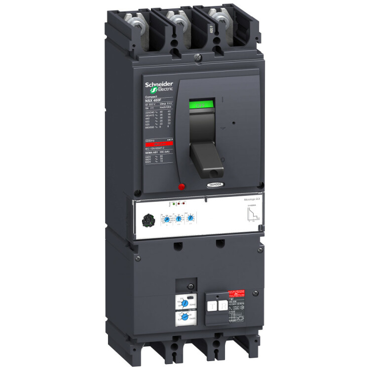Автоматический выключатель дифференциального тока VigiCompact NSX400F Schneider Electric, 3P3d - номинальный ток 400 А - Icu = 36 кА 380/415 В - Ics=100% Icu - с электронным расцепителем Micrologic 2.3 (защита LSOI) и блоком дифференциальной защиты Vigi MB - ШхВхГ – 220x320x279 мм - исполнение – стационарный - монтаж - на DIN-рейке или плате. Преимущества: Прямой доступ к экономии затрат, безопасность и защита, контроль и измерение параметров электроэнергии, надежность энергоснабжения, простота и удобство. Применения: Применение в системах электроснабжения объектов любого масштаба – от крупнейших промышленных предприятий до офисных зданий для защиты распределительных сетей, генераторов, кабелей большой протяженности, электродвигателей.