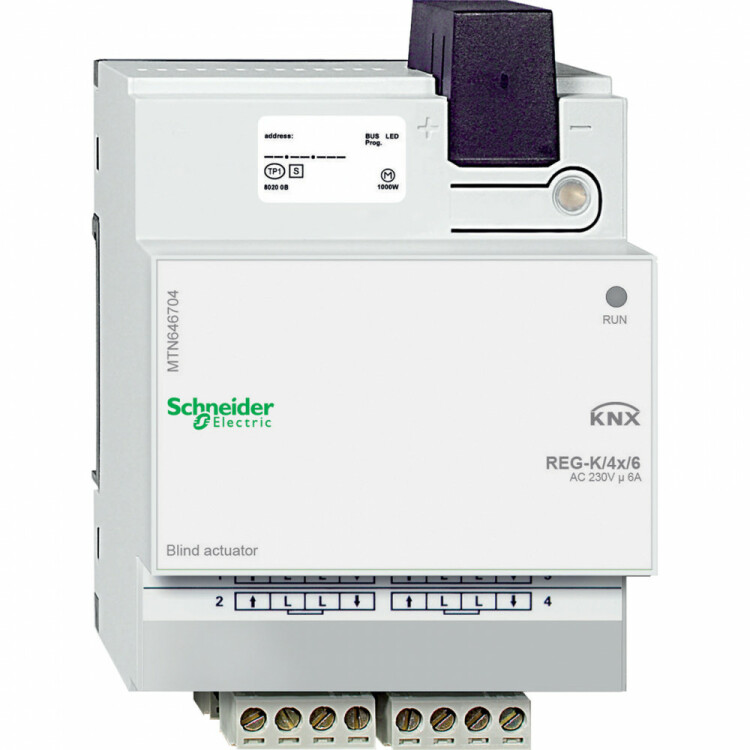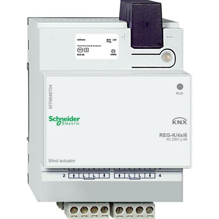 Актор для жалюзи REG-K/4X/6. серия продукта: KNX - тип устройства или его аксессуаров: привод рольставни - режим работы: Система шины KNX - тип шины: KNX. Преимущества: KNX от Schneider Electric предлагает единую комплексную систему, отвечающую международным стандартам, и множество решений, охватывающих различные технические сферы, при этом обеспечивая гибкость, комфортабельность, безопасность и рентабельность, особенно в новых зданиях. Идея системы KNX проста и оригинальна одновременно. KNX совмещает все основные функции здания, такие как освещение, отопление, кондиционирование воздуха или затенение в одну интеллектуальную систему, что помогает снизить эксплуатационные расходы благодаря значительной экономии электроэнергии, сократить время на установку, а также увеличить гибкость и адаптируемость к будущим доработкам.... применения: Решения KNX от Schneider Electric предназначены для, Офисных зданий, Общественных зданий, Отелей, Школ, Больниц, Магазинов, Элитных жилых помещений. Система интеллектуального управления зданием KNX – одно из наиболее эффективных решений для снижения энергопотребления и рационального использования энергии. Особенно хорошо KNX проявляет свой потенциал в офисных зданиях.. Программное обеспечение SeeTool от Schneider Electric отмечает пункты потенциальной экономии и представляет решения для управления зданием с помощью KNX по принципу «от комнаты к комнате», что позволяет в полной мере использовать имеющийся потенциал системы KNX....