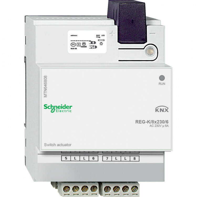 Актор для выключателя REG-K/8X230/6. серия продукта: KNX - тип устройства или его аксессуаров: исполнительный элемент выключателя - тип шины: KNX - доп. информация о модульном устройстве: подключается к разным фазам. Преимущества: .. применения: .. Преимущества: KNX от Schneider Electric предлагает единую комплексную систему, отвечающую международным стандартам, и множество решений, охватывающих различные технические сферы, при этом обеспечивая гибкость, комфортабельность, безопасность и рентабельность, особенно в новых зданиях. Идея системы KNX проста и оригинальна одновременно. KNX совмещает все основные функции здания, такие как освещение, отопление, кондиционирование воздуха или затенение в одну интеллектуальную систему, что помогает снизить эксплуатационные расходы благодаря значительной экономии электроэнергии, сократить время на установку, а также увеличить гибкость и адаптируемость к будущим доработкам.... применения: Решения KNX от Schneider Electric предназначены для, Офисных зданий, Общественных зданий, Отелей, Школ, Больниц, Магазинов, Элитных жилых помещений. Система интеллектуального управления зданием KNX – одно из наиболее эффективных решений для снижения энергопотребления и рационального использования энергии. Особенно хорошо KNX проявляет свой потенциал в офисных зданиях.. Программное обеспечение SeeTool от Schneider Electric отмечает пункты потенциальной экономии и представляет решения для управления зданием с помощью KNX по принципу «от комнаты к комнате», что позволяет в полной мере использовать имеющийся потенциал системы KNX....