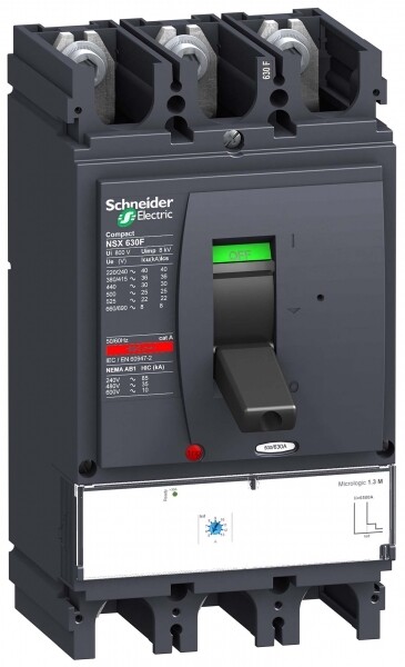 Автоматический выключатель Compact NSX630H Schneider Electric, 3P3d - номинальный ток 500 А - Icu = 70 кА 380/415 В - Ics=100% Icu - с электронным расцепителем Micrologic 1.3-M (защита электродвигателей I) - ШхВхГ – 160x290x150 мм - исполнение – стационарный - монтаж - на DIN-рейке или плате. Преимущества: Прямой доступ к экономии затрат, безопасность и защита, контроль и измерение параметров электроэнергии, надежность энергоснабжения, простота и удобство. Применения: Применение в системах электроснабжения объектов любого масштаба – от крупнейших промышленных предприятий до офисных зданий для защиты распределительных сетей, генераторов, кабелей большой протяженности, электродвигателей.