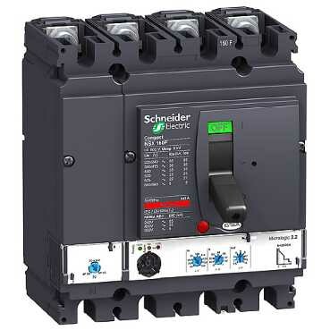 Автоматический выклю чатель ComPact NSX160B, исполнение – 4P 3d, 4d, 3d + N/2; номинальный ток 100 А; Icu = 25 kA 380/415 В; Ics = 100% Icu; с электронным расцепителем Micrologic 2.2 (защита LSOI); ШхВхГ – 140x161x86 мм; исполнение – стационарный; монтаж - на плате.