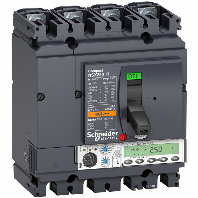 Автоматический выключатель Compact NSX100R, исполнение – 4P 3d, 4d, 3d + N/2, OSN - номинальный ток 40 А - Icu = 200 kA 380/415 В - Ics = 100% Icu - с электронным расцепителем Micrologic 5.2 E (защита LSI, счётчик энергии) - ШхВхГ – 141x192x135 мм - исполнение – стационарный - монтаж - на плате. Преимущества: Прямой доступ к экономии затрат, безопасность и защита, контроль и измерение параметров электроэнергии, надежность энергоснабжения, простота и удобство. Применения: Применение в системах электроснабжения объектов любого масштаба – от крупнейших промышленных предприятий до офисных зданий для защиты распределительных сетей, генераторов, кабелей большой протяженности, электродвигателей.