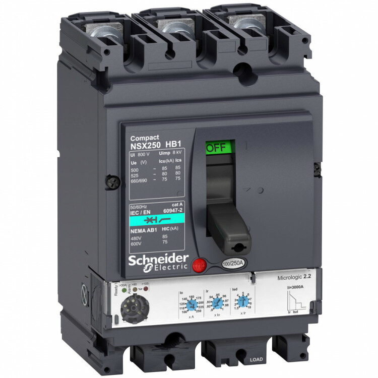 Автоматический выключатель Compact NSX100HB1, исполнение – 3P3d - номинальный ток 40 А - Icu = 75 kA при 690 В - Ics = 100% Icu - с электронным расцепителем Micrologic 2.2 (защита LSOI) - ШхВхГ – 185x114x135 мм - исполнение – стационарный - монтаж - на плате. Преимущества: Прямой доступ к экономии затрат, безопасность и защита, контроль и измерение параметров электроэнергии, надежность энергоснабжения, простота и удобство. Применения: Применение в системах электроснабжения объектов любого масштаба – от крупнейших промышленных предприятий до офисных зданий для защиты распределительных сетей, генераторов, кабелей большой протяженности, электродвигателей.