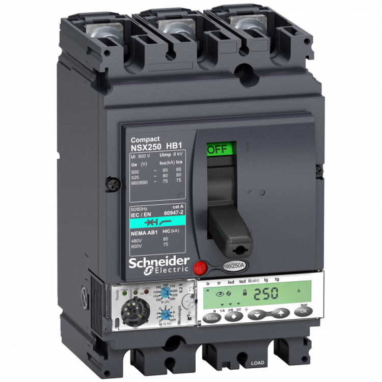 Автоматический выключатель Compact NSX100HB1, исполнение – 3P3d - номинальный ток 40 А - Icu = 75 kA при 690 В - Ics = 100% Icu - с электронным расцепителем Micrologic 6.2 E (защита LSIG, счётчик энергии) - ШхВхГ – 185x114x135 мм - исполнение – стационарный - монтаж - на плате. Преимущества: Прямой доступ к экономии затрат, безопасность и защита, контроль и измерение параметров электроэнергии, надежность энергоснабжения, простота и удобство. Применения: Применение в системах электроснабжения объектов любого масштаба – от крупнейших промышленных предприятий до офисных зданий для защиты распределительных сетей, генераторов, кабелей большой протяженности, электродвигателей.