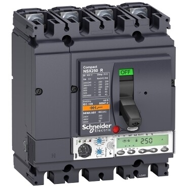 Автоматический выключатель Compact NSX250R Schneider Electric, исполнение – 4P 3d, 4d, 3d + N/2, OSN - номинальный ток 250 А - Icu = 200 kA при 415 В - Ics = 100% Icu - с электронным расцепителем Micrologic Micrologic 6.2 E (защита LSIG, счетчик энергии) - ШхВхГ – 141x192x135 мм - исполнение – стационарный - монтаж - на плате. Преимущества: Прямой доступ к экономии затрат, безопасность и защита, контроль и измерение параметров электроэнергии, надежность энергоснабжения, простота и удобство. Применения: Применение в системах электроснабжения объектов любого масштаба – от крупнейших промышленных предприятий до офисных зданий для защиты распределительных сетей, генераторов, кабелей большой протяженности, электродвигателей.