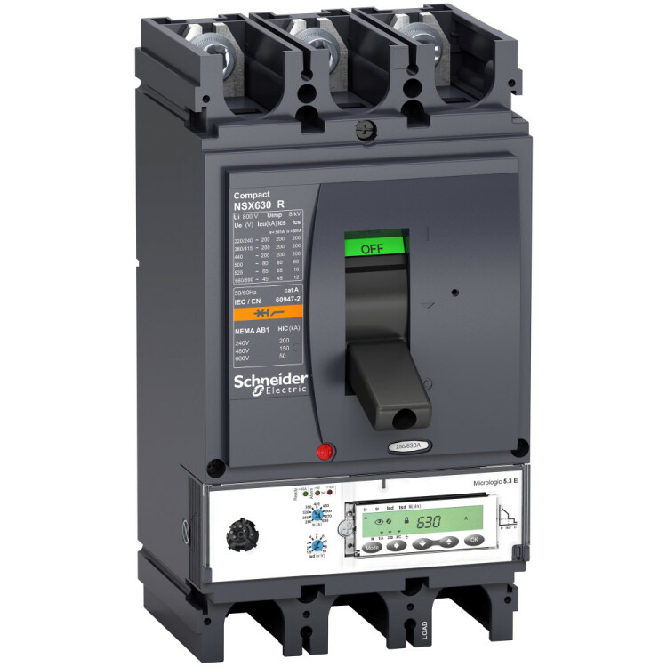Автоматический выключатель Compact NSX400R Schneider Electric, 3P3d - номинальный ток 400 А - Icu = 200 кА 380/415 В - Ics=100% Icu - с электронным расцепителем Micrologic 5.3 E (защита LSI, счётчик энергии) - ШхВхГ – 152x292x152 мм - исполнение – стационарный - монтаж - на DIN-рейке или плате. Преимущества: Прямой доступ к экономии затрат, безопасность и защита, контроль и измерение параметров электроэнергии, надежность энергоснабжения, простота и удобство. Применения: Применение в системах электроснабжения объектов любого масштаба – от крупнейших промышленных предприятий до офисных зданий для защиты распределительных сетей, генераторов, кабелей большой протяженности, электродвигателей.