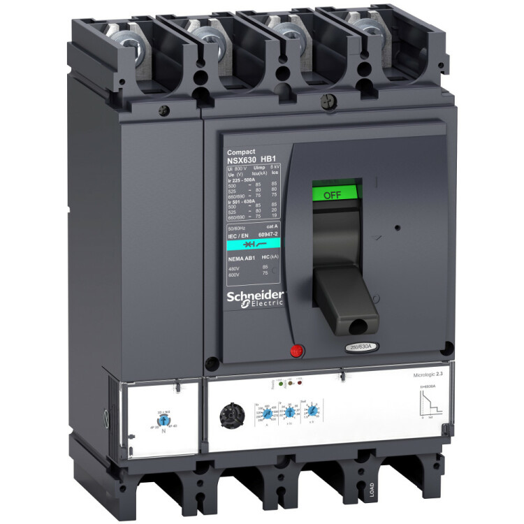 Автоматический выключатель Compact NSX400HB1 Schneider Electric, 4P 3d, 4d, 3d + N/2 - номинальный ток 250 А - Icu = 75 кА 690 В - Ics=100% Icu - с электронным расцепителем Micrologic 2.3 (защита LSOI) - ШхВхГ – 203x292x152 мм - исполнение – стационарный - монтаж - на DIN-рейке или плате. Преимущества: Прямой доступ к экономии затрат, безопасность и защита, контроль и измерение параметров электроэнергии, надежность энергоснабжения, простота и удобство. Применения: Применение в системах электроснабжения объектов любого масштаба – от крупнейших промышленных предприятий до офисных зданий для защиты распределительных сетей, генераторов, кабелей большой протяженности, электродвигателей.