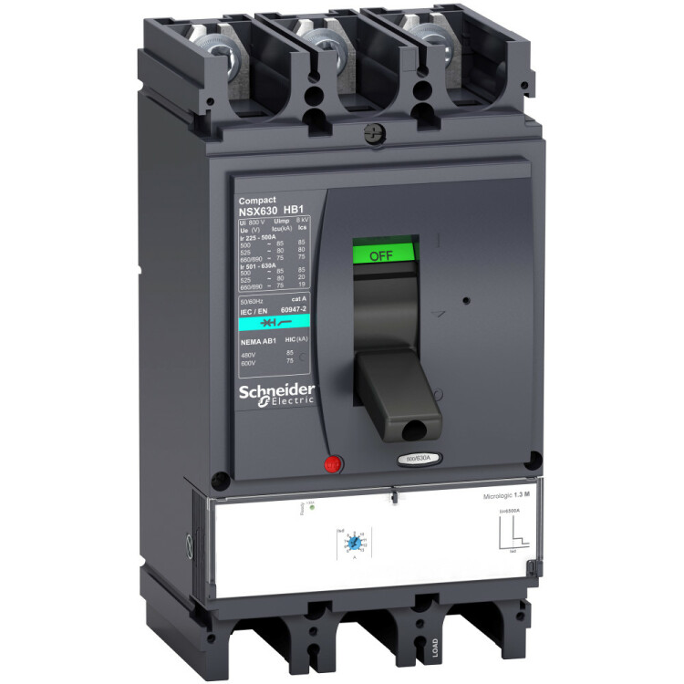 Автоматический выключатель Compact NSX400HB1 Schneider Electric, 3P3d - номинальный ток 320 А - Icu = 75 кА 690 В - Ics=100% Icu - с электронным расцепителем Micrologic 1.3 M (защита электродвигателей I) - ШхВхГ – 152x292x152 мм - исполнение – стационарный - монтаж - на DIN-рейке или плате. Преимущества: Прямой доступ к экономии затрат, безопасность и защита, контроль и измерение параметров электроэнергии, надежность энергоснабжения, простота и удобство. Применения: Применение в системах электроснабжения объектов любого масштаба – от крупнейших промышленных предприятий до офисных зданий для защиты распределительных сетей, генераторов, кабелей большой протяженности, электродвигателей.