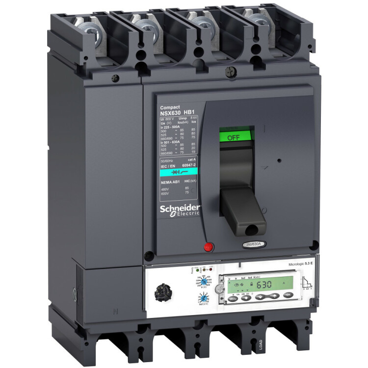 Автоматический выключатель Compact NSX400HB1 Schneider Electric, 4P 3d, 4d, 3d + N/2, 3d + OSN - номинальный ток 400 А - Icu = 75 кА 690 В - Ics=100% Icu - с электронным расцепителем Micrologic 5.3 E (защита LSI, счётчик энергии) - ШхВхГ – 203x292x152 мм - исполнение – стационарный - монтаж - на DIN-рейке или плате. Преимущества: Прямой доступ к экономии затрат, безопасность и защита, контроль и измерение параметров электроэнергии, надежность энергоснабжения, простота и удобство. Применения: Применение в системах электроснабжения объектов любого масштаба – от крупнейших промышленных предприятий до офисных зданий для защиты распределительных сетей, генераторов, кабелей большой протяженности, электродвигателей.