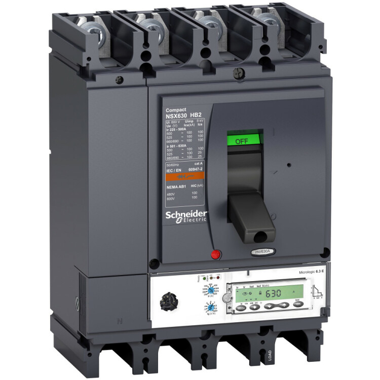 Автоматический выключатель Compact NSX400HB2 Schneider Electric, 4P 3d, 4d, 3d + N/2, 3d + OSN - номинальный ток 400 А - Icu = 100 кА 690 В - Ics=100% Icu - с электронным расцепителем Micrologic 6.3 E (защита LSIG, счётчик энергии) - ШхВхГ – 203x292x152 мм - исполнение – стационарный - монтаж - на DIN-рейке или плате. Преимущества: Прямой доступ к экономии затрат, безопасность и защита, контроль и измерение параметров электроэнергии, надежность энергоснабжения, простота и удобство. Применения: Применение в системах электроснабжения объектов любого масштаба – от крупнейших промышленных предприятий до офисных зданий для защиты распределительных сетей, генераторов, кабелей большой протяженности, электродвигателей.