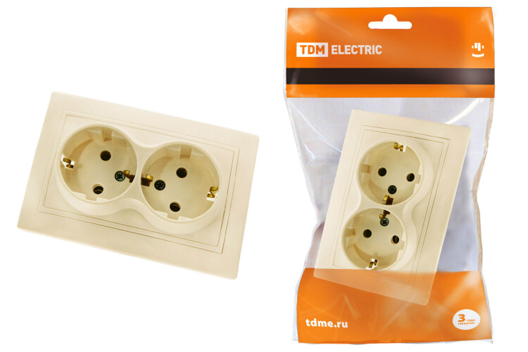 Розетка двойная 2П+З 16А 250В сл. кость "Таймыр" TDM (кр.10шт)