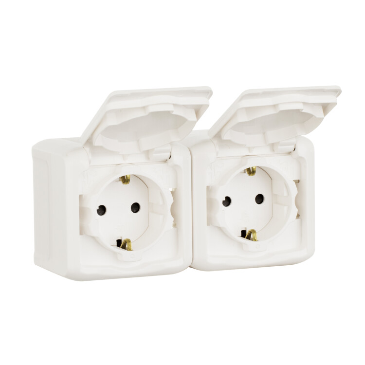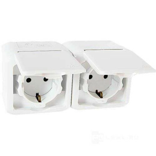 Розетка 2X2К+З шт IP44 БЕЛ (кр.5ШТ)